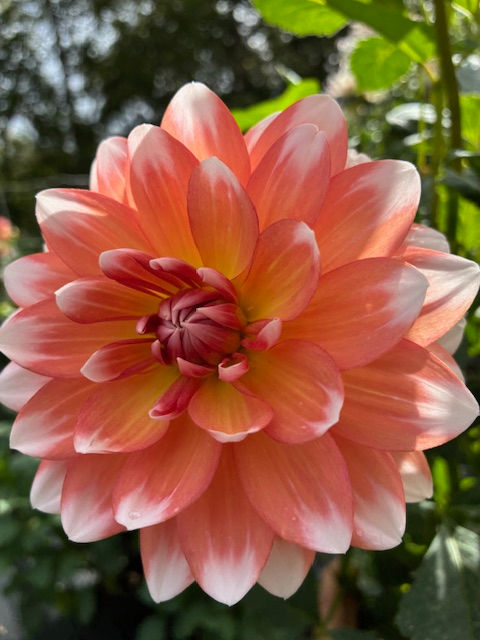A fabulous dahlia for cut flowers and wedding work 'Tahoma Stellar Feller' features pearly white blooms with a mauve blush and slightly darker centers. It's a beautiful and subtle stellar form dahlia that you'll love in the garden and vase. Great sturdy stems on 5 ft plants.